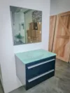 - Integrated storage cabinets – Provides organized space for toiletries and essentials