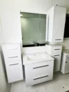 This vanity set is a perfect blend of practicality and style, offering a clean, minimalist look while ensuring efficient storage. The LED mirror adds a modern touch, improving functionality and enhancing the ambiance of any bathroom.